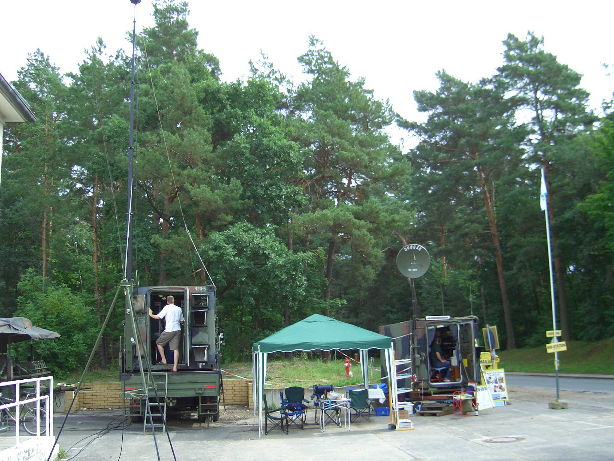 | DC2CW ex DO7CW | DC2CW im mobilen Funkraum | DC2CW mit Regendach |
