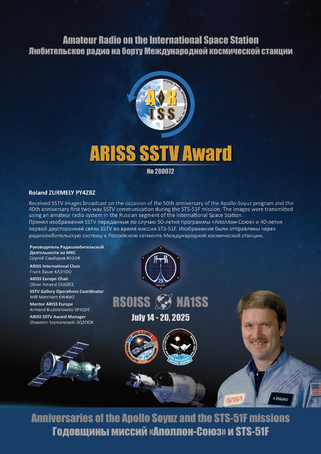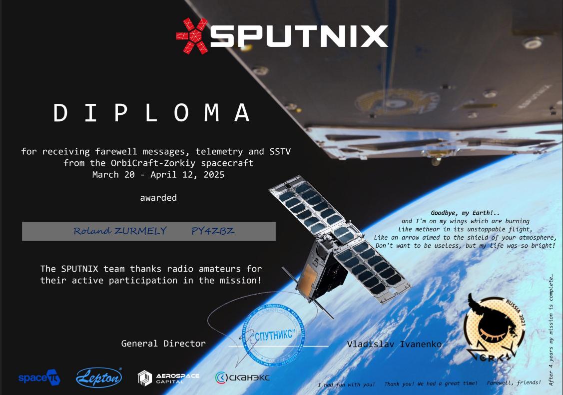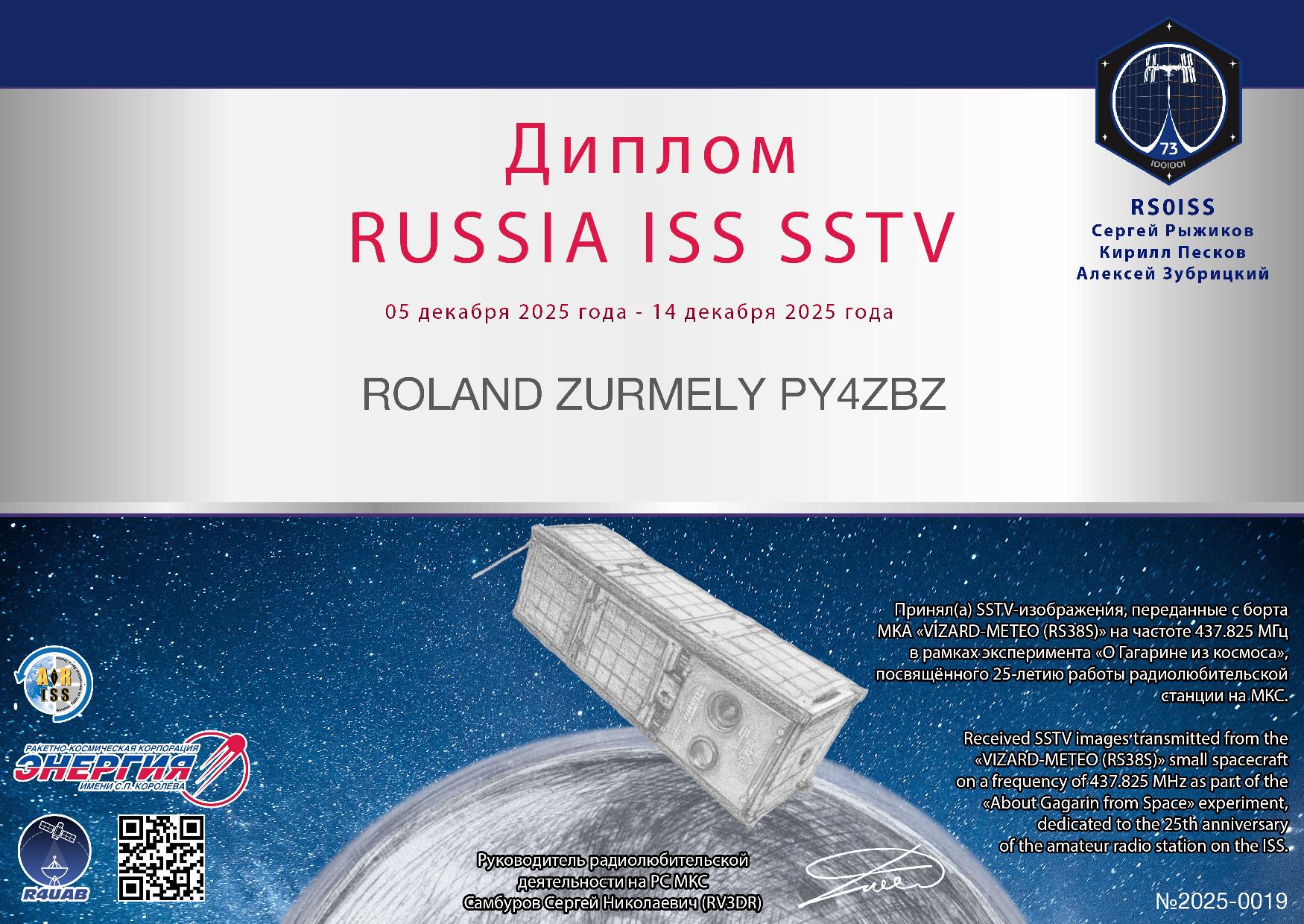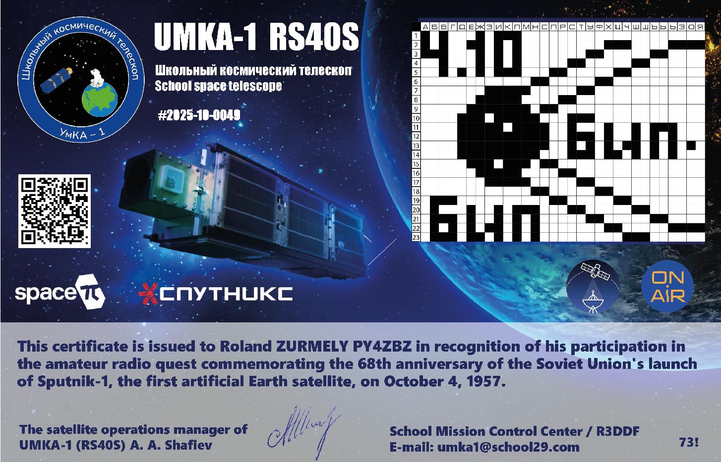 Ddiploma do New Year's space diploma program "Space-π", pela recepção dos 6 passwords dos Monitor-1, Monitor-4 e UTMN