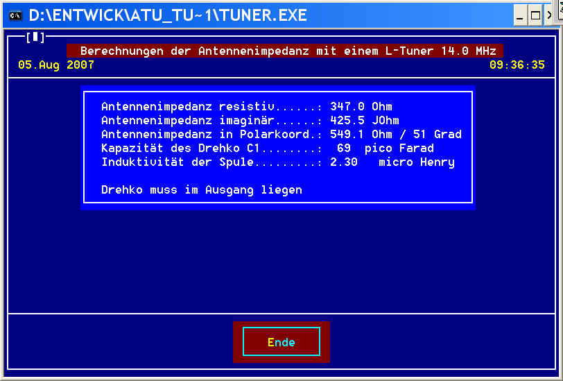 L-Tuner Tiefpass, berechnet den L-Tuner wie in der Bauanleitung näher beschrieben.