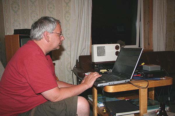 DJ5ZWS, man beachte den als Kühlung umfunktionierten Heizlüfter auf der PA :-)