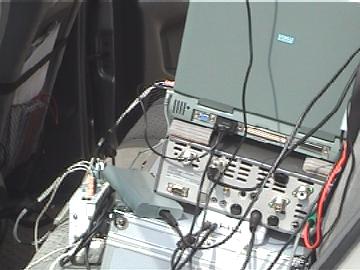 Следующий день ушёл на перетаскивание железа в машину и подготовительные работы к отъезду. В 18:00 часов выехали, направление - к Владимиру RD3BC в район г.г.Чехов, Серпухов. На KENWOOD на мягких подложках поставили Siemens-Nexdorf , вытащив из него блок питания (на фото слева это видно), а всю "ботву"хорошо видно на правом снимке.