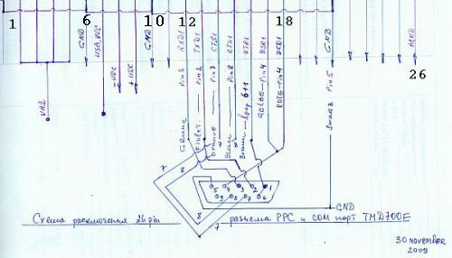 внизу схема расключения 9 пинового разьема Kenwood TMD-700e