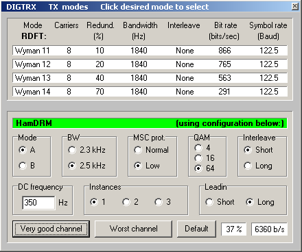 Programa experimental com modos RDFT de KB9VAK e HamDRM de HB9TLK.