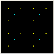 O DIGTRX permite visualizar a constelação QAM recebida, e portanto misturada com o ruído introduzido pelo meio, na tela "Scope". Um sinal QAM sem ruído (ou com ruído desprezível) é visto assim: