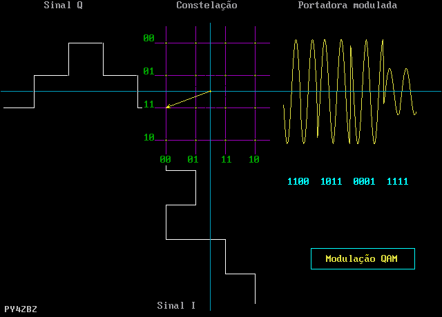QAM  Quadrature Amplitude Modulation : soma vetorial de duas ondas em quadratura e moduladas em amplitude, o que resulta numa onda modulada simultaneamente em fase e amplitude.
