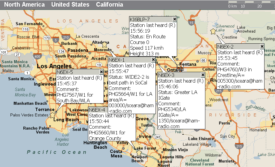 Это и позволило ближе познакомится с действующей сетью APRS Лос Анжелеса и его пригородов и убедится в работоспособности мировых радиолюбительских ИНТЕРНЕТ структур и их применимости у нас.