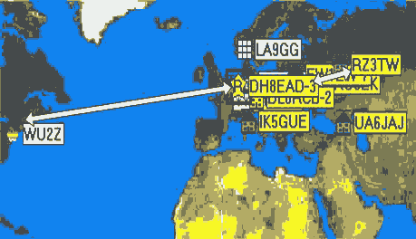 Сразу же после отправки пакета на карте увидел уже знакомый сервер WU2Z. Это уже было интересно.