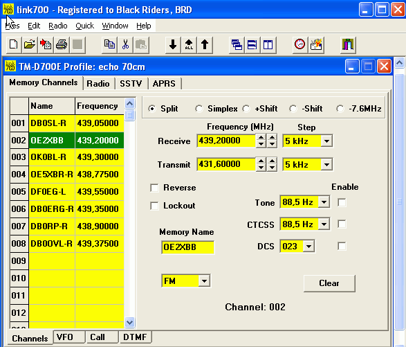 В качестве примера смотрите два окна Echo Link на 2 метра и 70 сантиметров.