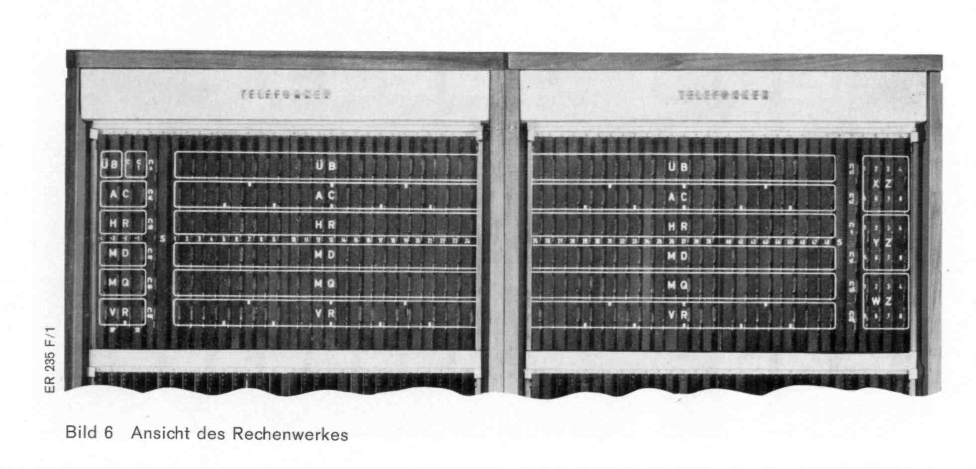 auswechselbaren Einschubeinheiten für die Befehle. Hauptspeicher: Ferritkernspeicher 28 672