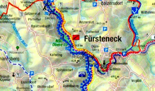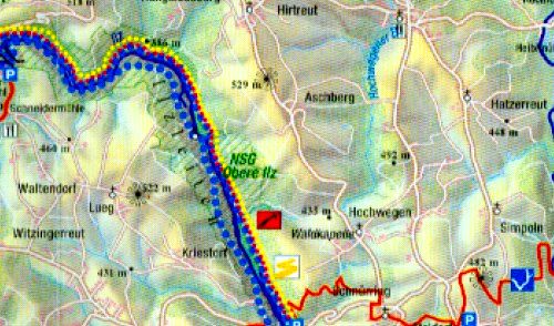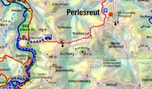 в 3 километрах от Перле, долина реки Ilz (левый приток Дуная) .,в хорошую погоду хорошо просматривается,.... отсюда начинается крутой спуск к реке.