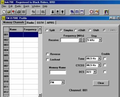 в окно Receive вписать необходимую для работы частоту например 145,687 присвоить номер канала и запомнить эту установку в папке "мои документы"таким образом можно создать названия загружаемых файлов например