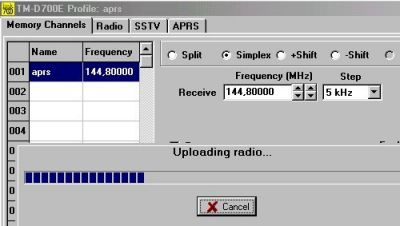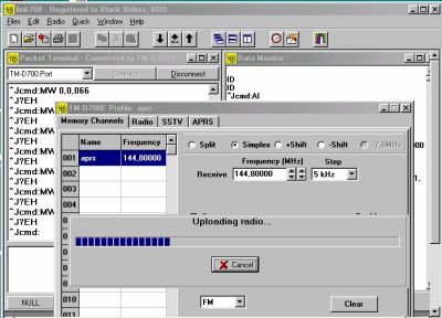 зайдите в меню и нажмите Files....... Open откроется папка "Мои документы"кликните 2 раза заранее положенный в папку файл 145.687.d7x, после этого зайдите в менюRadio...Upload....Upload All и кликнув увидите следующую картину