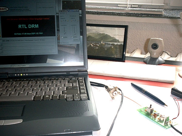 Der DRM-Bausatz mit einem Quarz für RTL auf KW im Tesbetrieb