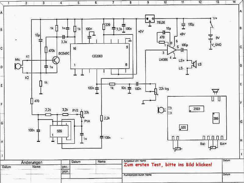 Der Schaltplan des Detektor`s und der erste Test (klick in das Bild!)