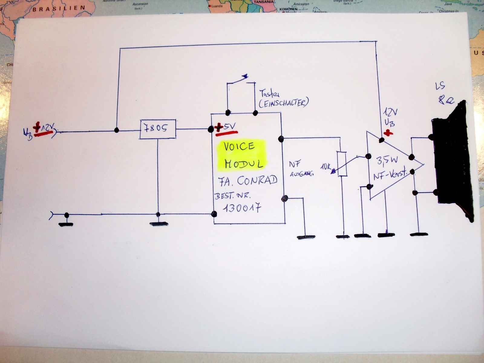 Das fertig montierte Soundmodul mit NF-Verstärker