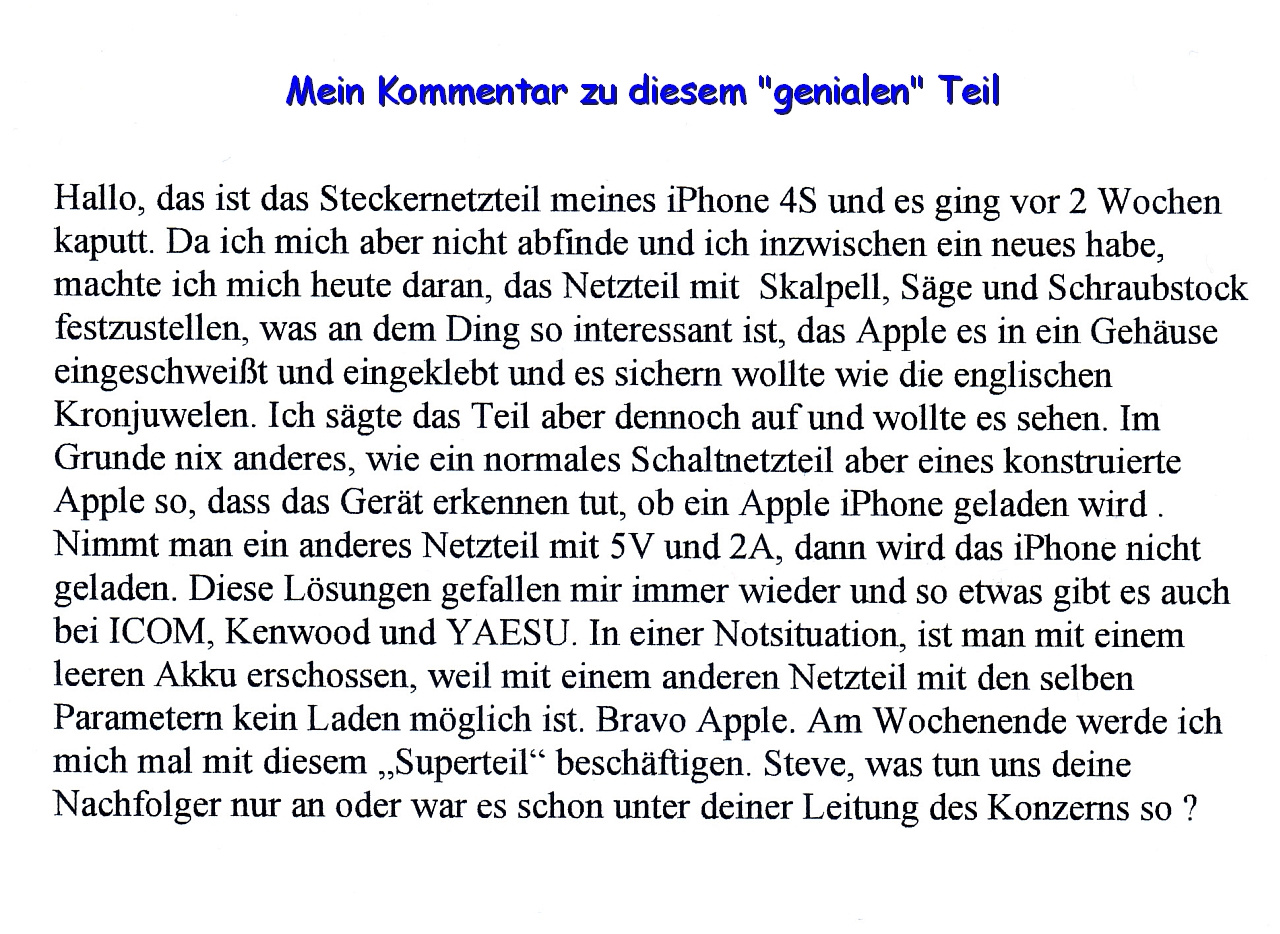 Das "Mein etwas ironische Beschreibung diese Netzteils"
