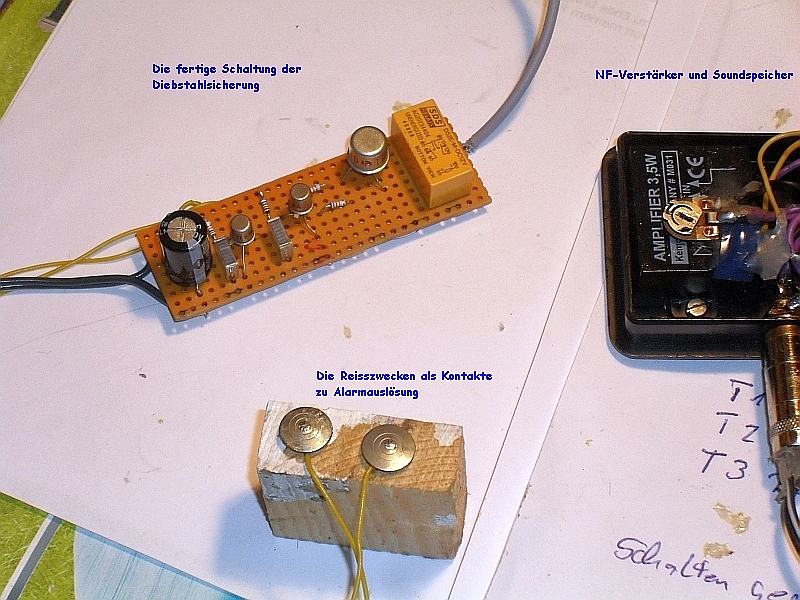 viel Spaß beim Experimentieren, 73 Bernhard OE5CBM Die Schaltung des Berührungsschalters. Wenn man für T1/T2 einen PNP und für T3 ein NPN Transistor benutzt kann man gegen Masse Schalten, was beim Fahrrad sicher besser ist, weil man den Rahmen des Fahrrades als Masse nutzen kann. Die Betriebsspannung muss dann aber umgepolt werden und an T3 kommt natürlich dann -Minus UB.