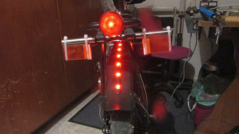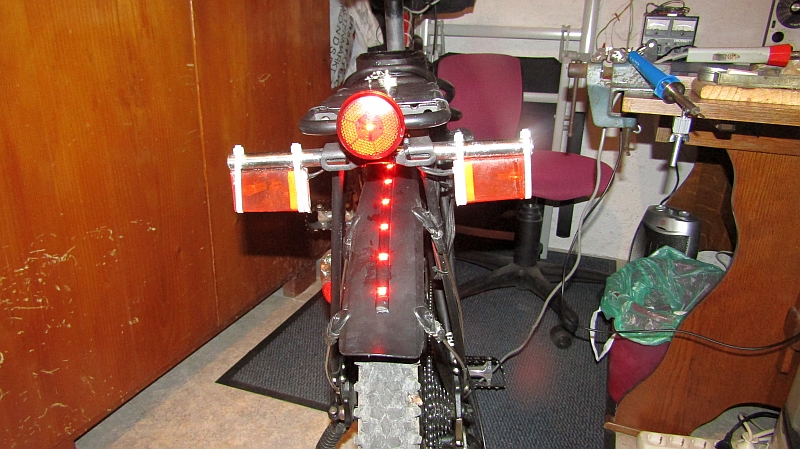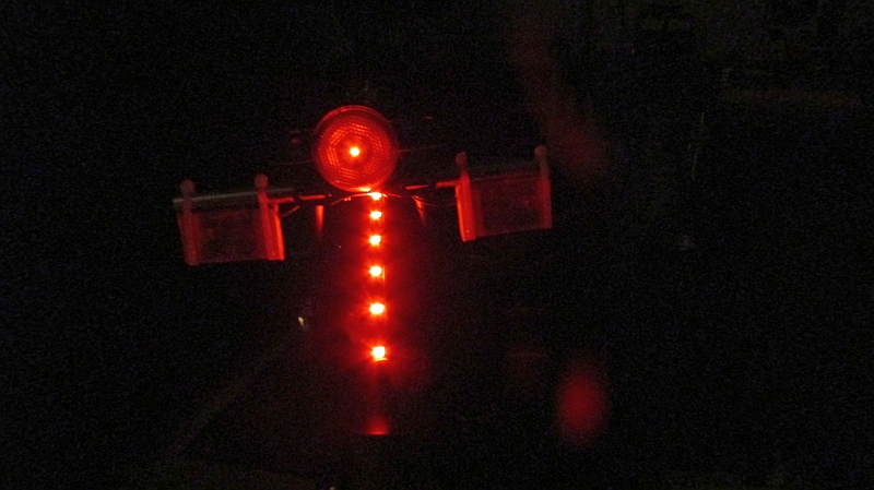 Das Rücklicht und die roten LED`s des Leuchtbandes im Einsatz