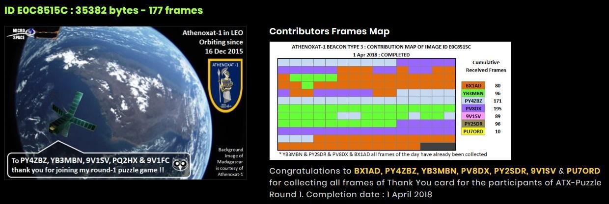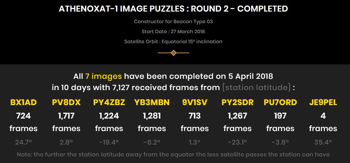 Em 05-04-2018 foi completada a segunda fase de puzzles transmitidos pelo Athenoxat-1: