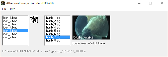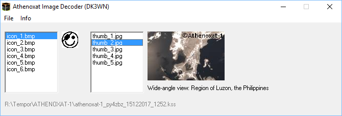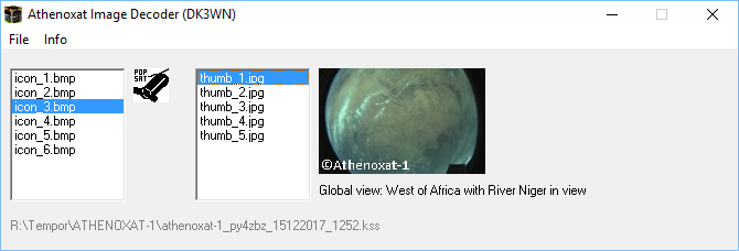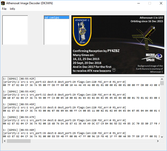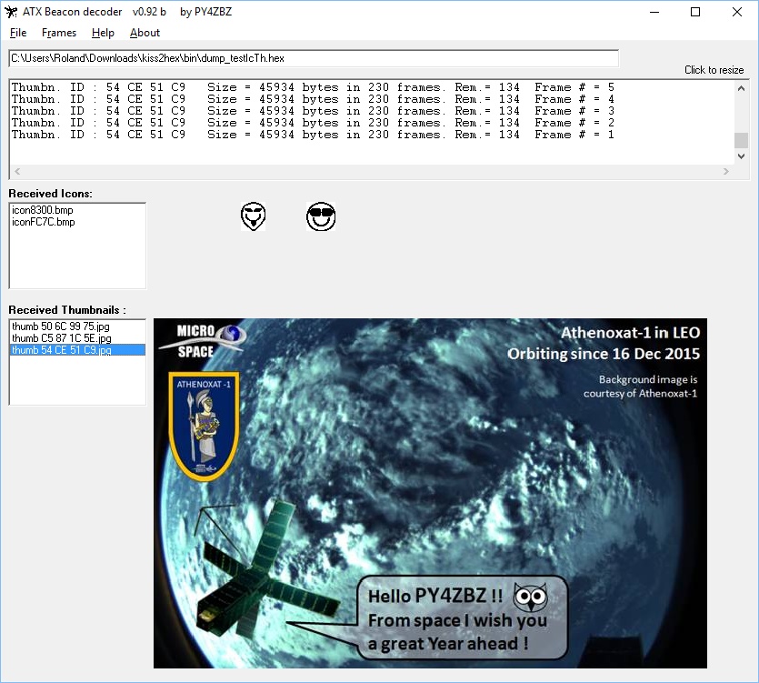 Elaboramos um programa (figura acima) para decodificar o beacon de dados do Athenoxat-1 e gerar os icons e thumbnails contidos nele.