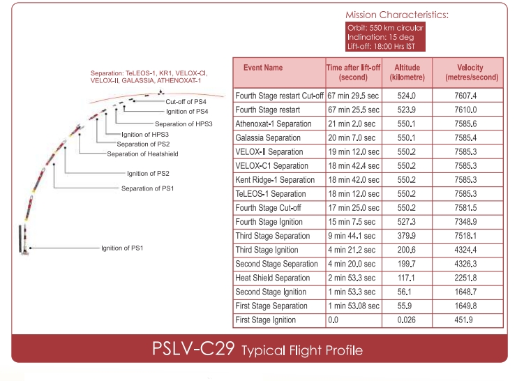 A figura seguinte mostra o momento da ejeção do satélite, 21 mn após o lançamento na Índia: