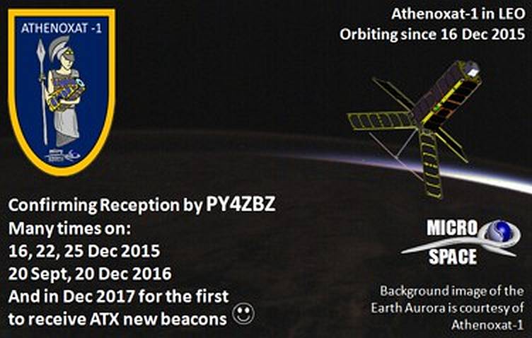 Vejam o interessante vídeo da Micro Space onde aparece a primeira recepção do beacon do Athenoxat-1 por PY4ZBZ, aos 6:21 :