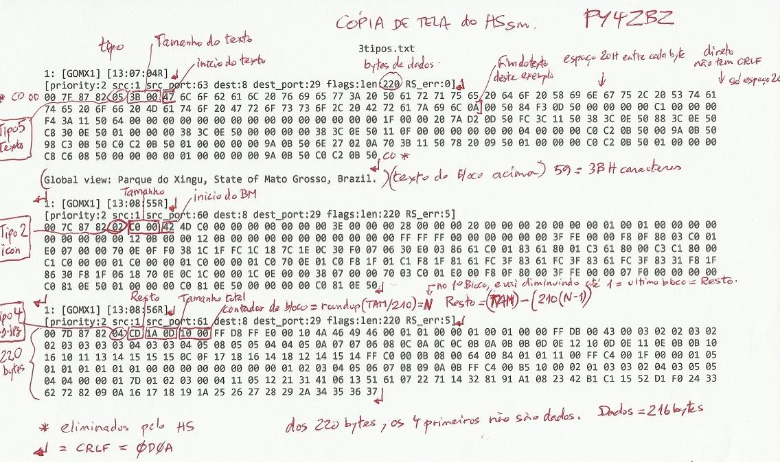 A transmissão da imagem de 31286 bytes demorou 4 minutos ! Foram 149 blocos com 220 bytes, com duração de 0,48 s e intervalos de 1,12 segundos !