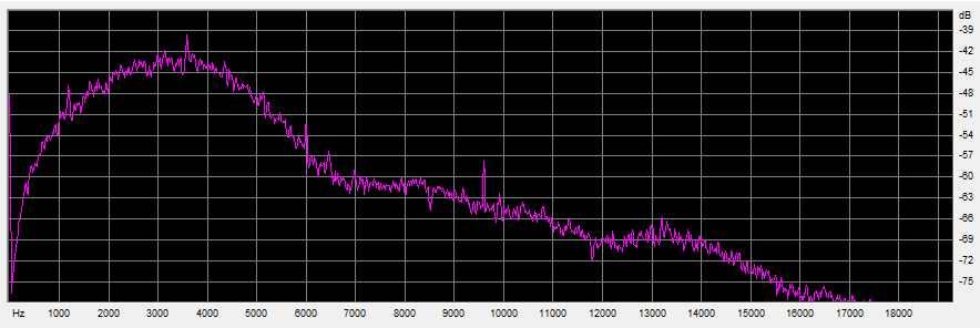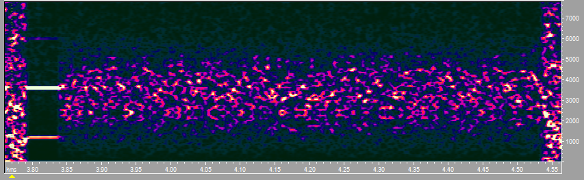 O sinal em banda base (demodulado em FM) tem o seguinte espectrograma: