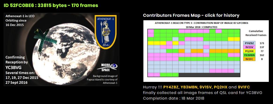 Em 12-01-2018 recebemos uma imagem especial do Athenoxat-1, em duas passagens programadas, enviada pelo Yesie 9V1SQ, que pode ser vista na figura seguinte: