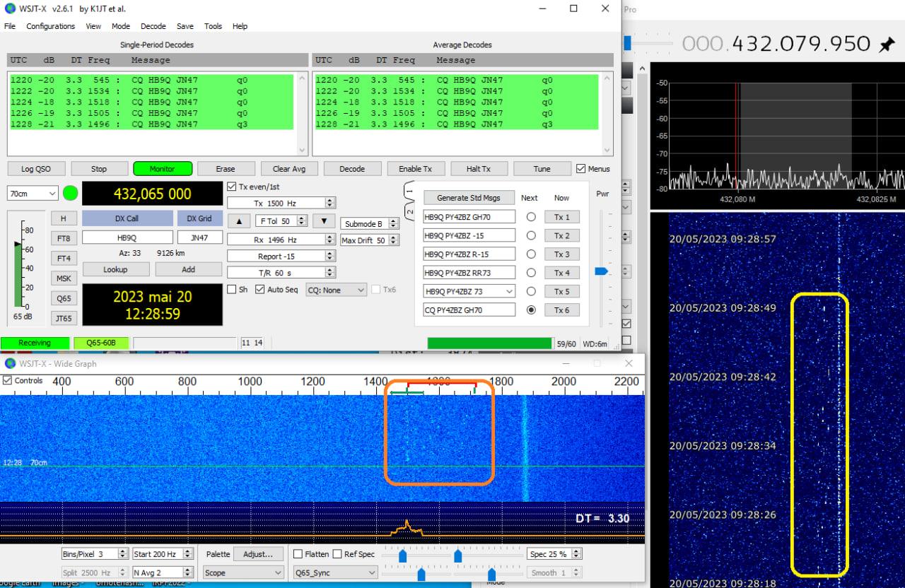 Em 20-05-2023 captei os sinais de Dan HB9Q usando 1 kW numa parábola de 15 metros !: