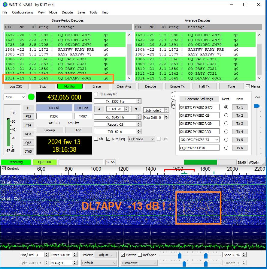 Em 14-02-2024 copiei também PA5Y, PA3FWV e EA5CJ, além de novamente OK1DFC e o imbatível DL7APV:
