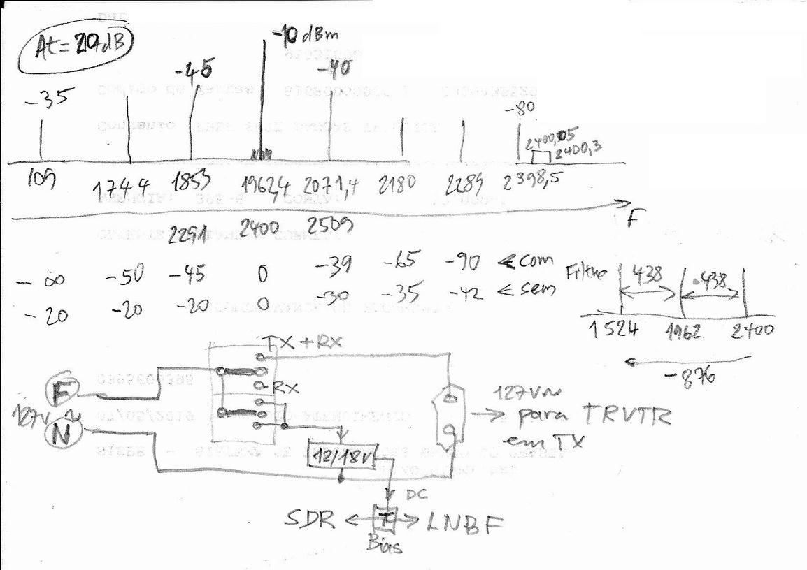 É portanto preciso amplificar os -7 dBm fornecidos pelo transverter (via cabo com 2 dB de perda), com pelo menos 29 dB !